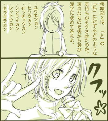 三の先生の手紙の内容で、上野公園でKのお嬢さんへの恋をあきらめさせようとして突き放すことを言った夜に、私が寝ているところにKが声をかけてきたってところのKの気持ちはどんなだと思うか。